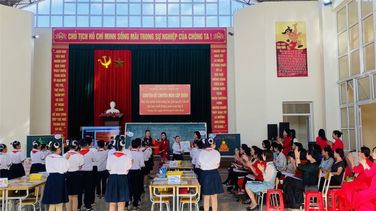 🔔 Thực hiện kế hoạch tổ chức chuyên đề chuyên môn cấp tiểu học năm học 2023-2024 của Phòng GD&ĐT quận Hải An, chiều ngày 19/01/2024 Trường Tiểu học Tràng Cát đã tổ chức chuyên đề chuyên môn cấp quận: “Dạy học phát triển năng lực giải quyết vấn đề cho học sinh trong môn Toán lớp 4”