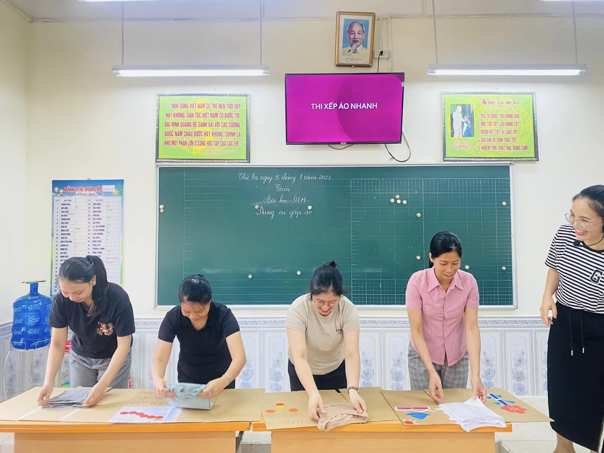khối 1 đã tổ chức tiết dạy minh họa do cô Phạm Thị Nga thực hiện dạy học STEM môn Toán bài: “Dụng cụ gấp áo”. Dựa trên kết quả hoạt động ở tiết học trước của bài học, trong tiết dạy minh hoạ, giáo viên tổ chức cho học sinh thực hiện hoạt động khám phá và hoạt động thực hành trong chuỗi các hoạt động của một bài học STEM. Tiết học được mở đầu trong không khí vui tươi,cô giáo khéo léo dẫn dắt học sinh đến việc cần làm gì để gấp được những chiếc áo xinh xắn và vuông vắn.