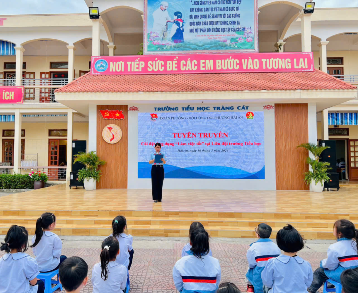 Ngày 16/3, Đoàn phường – Hội đồng Đội phường Hải An đã tổ chức chương trình tuyên truyền, hướng dẫn cài đặt và sử dụng ứng dụng “Làm việc tốt” tại Liên đội Trường Tiểu học Tràng Cát.