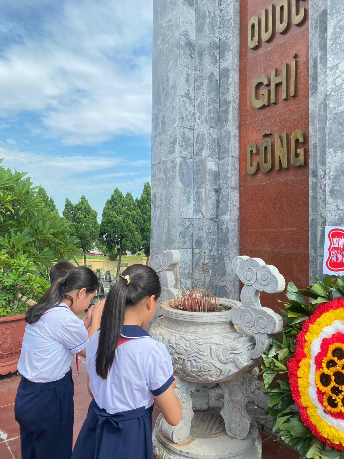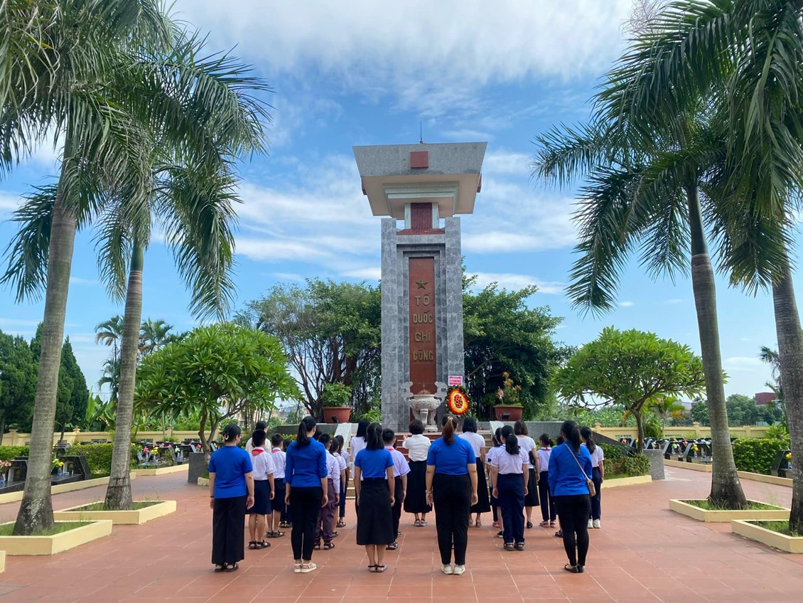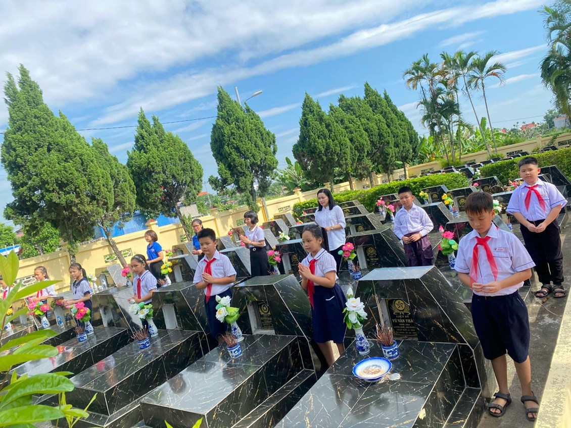 Trước thềm năm học mới và nhân dịp kỉ niệm 78 năm ngày Quốc Khánh (2/9/1945-2/9/2023), cô và trò trường Tiểu học Tràng Cát tổ chức lễ viếng Nghĩa trang liệt sĩ để bày tỏ lòng biết ơn sâu sắc tới các anh hùng liệt sĩ . Sau phút tưởng niệm, các em học sinh đã dâng hương lên các phần mộ liệt sĩ.