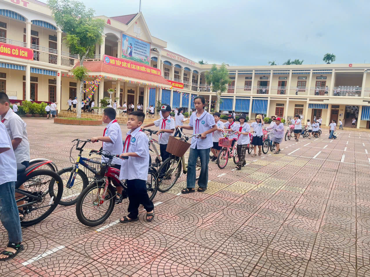 Hình ảnh các em học sinh trường Tiểu học Tràng Cát đi bộ, dắt xe đạp ngay ngắn vào nhà để xe không chỉ thể hiện sự ngoan ngoãn, kỷ luật mà còn là một bài học nhỏ về trách nhiệm với bản thân và cộng đồng.