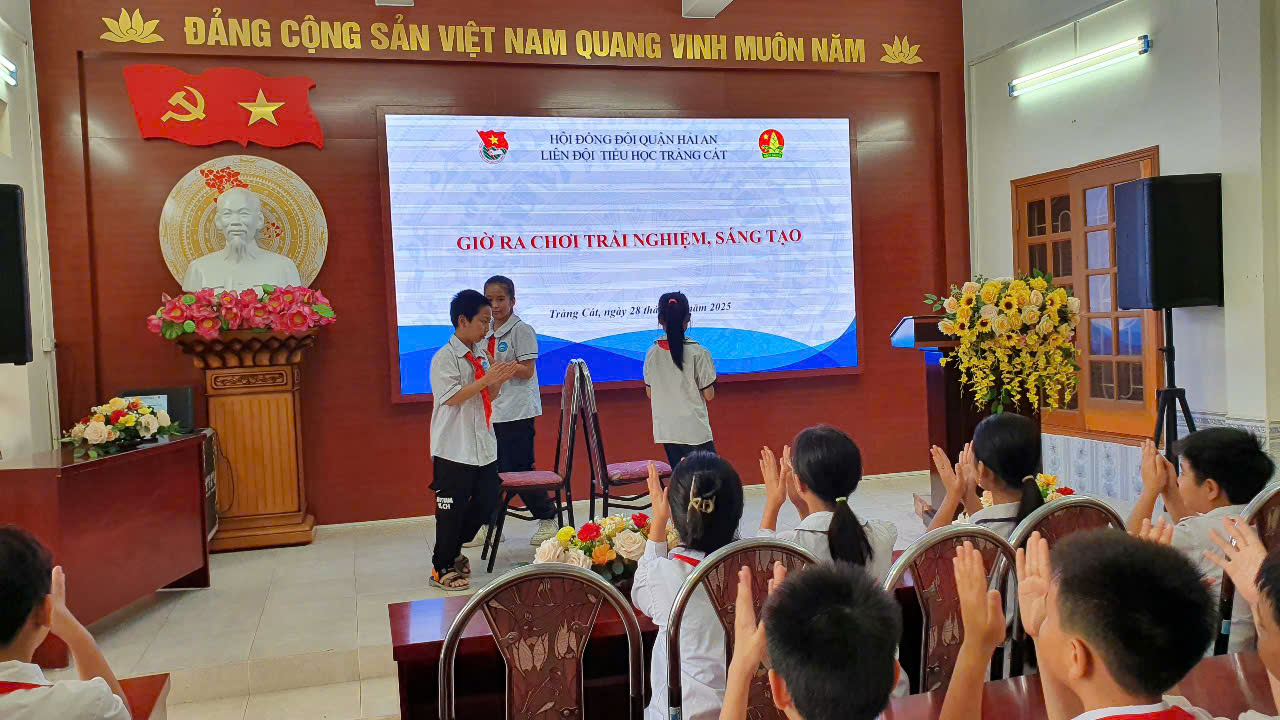 Nhằm đổi mới và đa dạng hóa các hoạt động ngoài giờ lên lớp, tạo môi trường học tập thân thiện, lành mạnh và bổ ích cho học sinh, ngày 28/3/2025, Liên đội Trường Tiểu học Tràng Cát đã tổ chức buổi tập huấn về công tác tổ chức “Giờ ra chơi trải nghiệm sáng tạo” cho đội ngũ phụ trách Đội, giáo viên chủ nhiệm và cán bộ lớp.