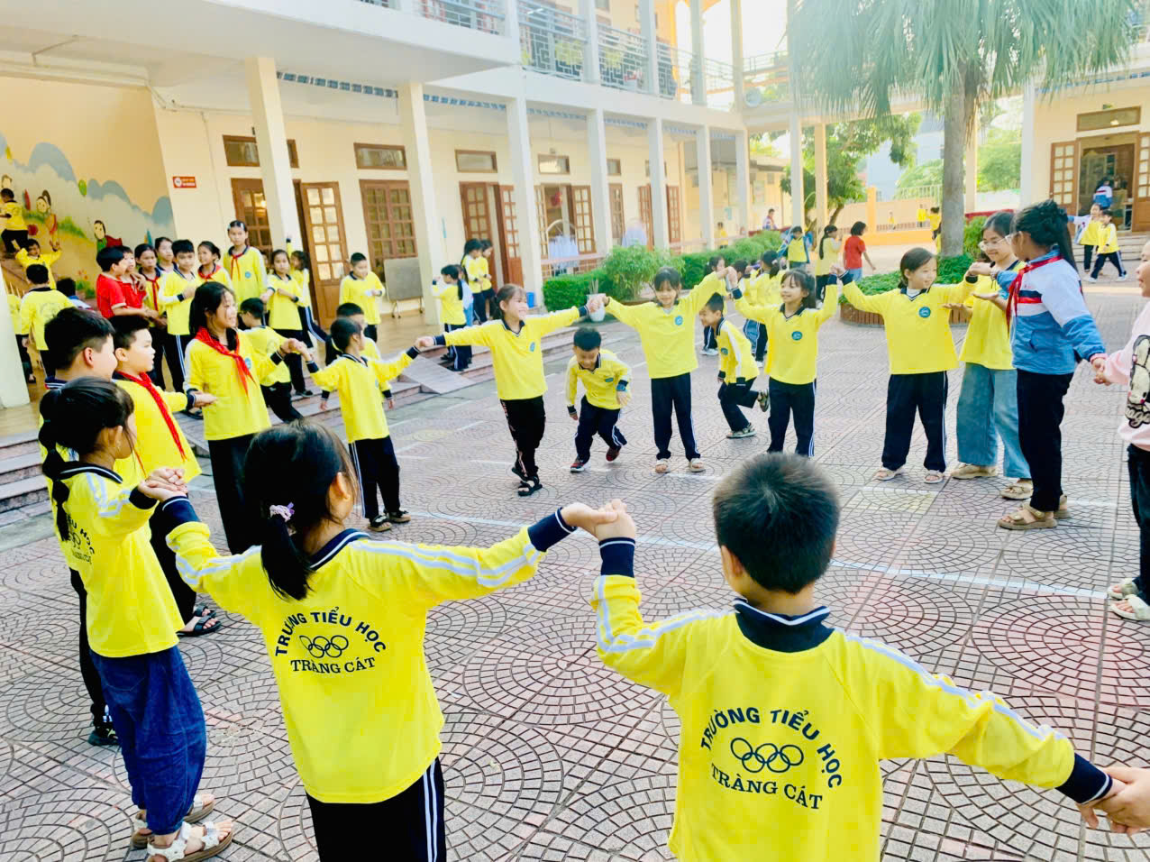 Sân trường rộn tiếng cười vui.
