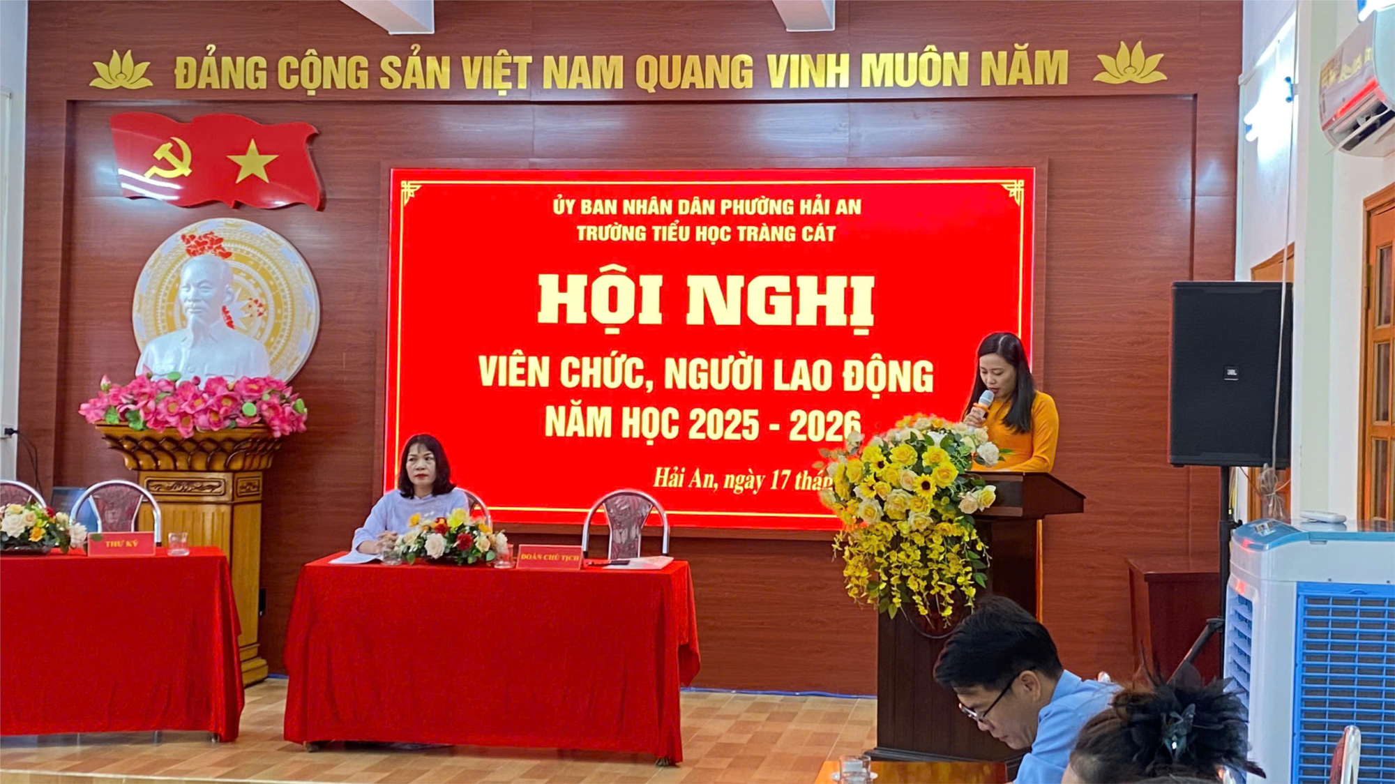 Sáng ngày 17 tháng 10 năm 2025, Trường Tiểu học Tràng Cát long trọng tổ chức Hội nghị viên chức và người lao động năm học 2025 – 2026. Đây là dịp quan trọng để toàn thể đội ngũ nhà trường cùng nhìn lại những kết quả đã đạt được trong năm học vừa qua, đồng thời bàn bạc, thống nhất phương hướng, nhiệm vụ cho năm học mới.