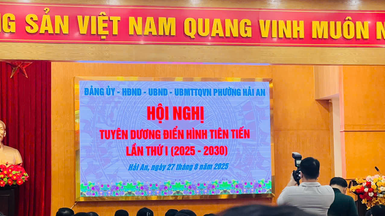 Chiều 27/8/2025, tại Hội trường tầng 7 trụ sở Đảng ủy – HĐND – UBND – UBMTTQVN phường, UBND phường Hải An tổ chức Hội nghị tuyên dương điển hình tiên tiến lần thứ I giai đoạn 2025 – 2030. Hội nghị có sự tham dự của lãnh đạo thành phố, lãnh đạo phường, đại diện các ban ngành, đoàn thể, trường học, tổ dân phố cùng các tập thể, cá nhân tiêu biểu.