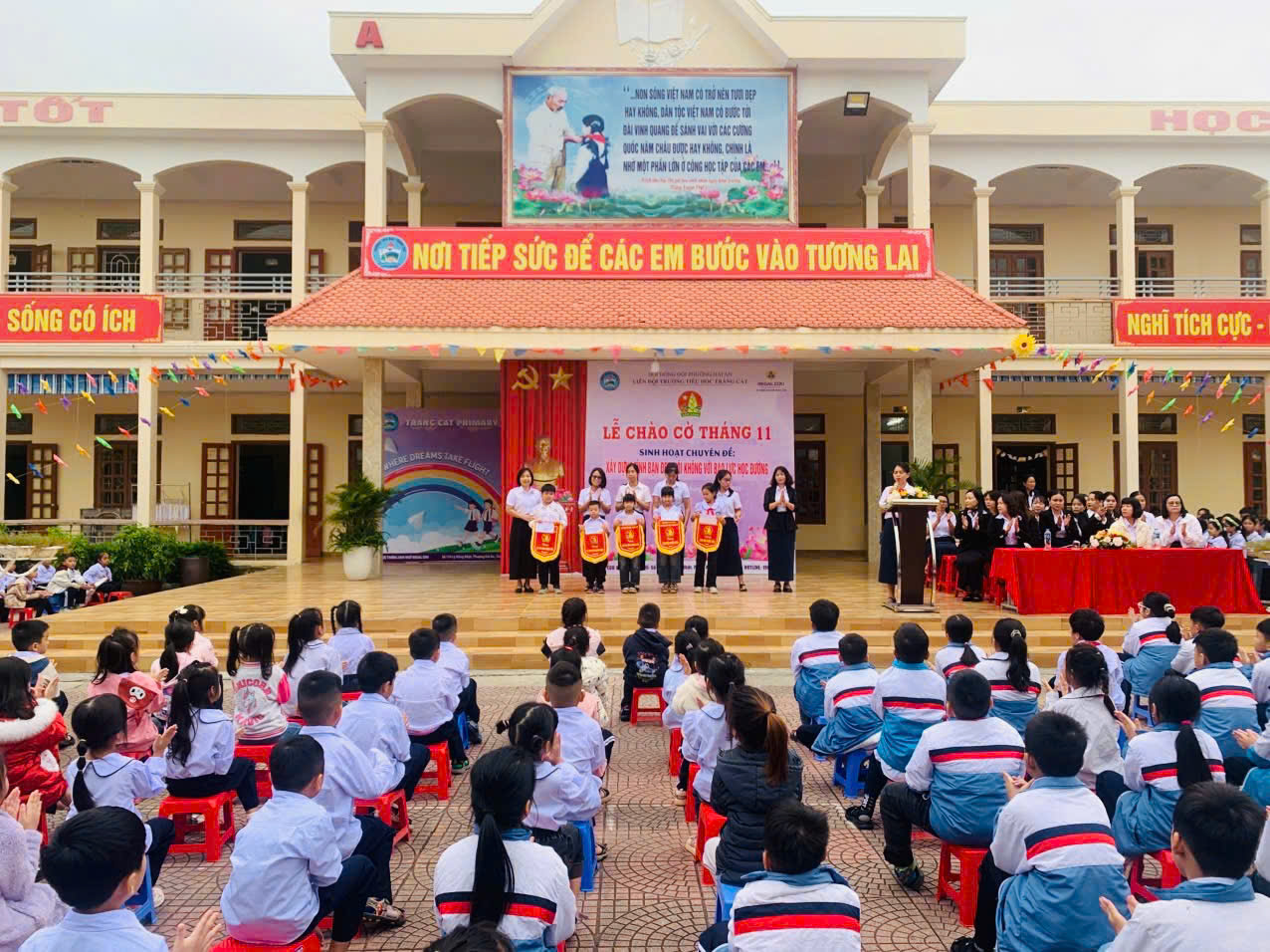 Buổi chào cờ tháng 11 không chỉ là dịp biểu dương, khen thưởng mà còn là hành trình nuôi dưỡng tâm hồn – giúp mỗi học sinh Tràng Cát biết yêu thương, nói lời hay, làm việc tốt, cùng nhau xây dựng ngôi trường thân thiện, học sinh tích cực.