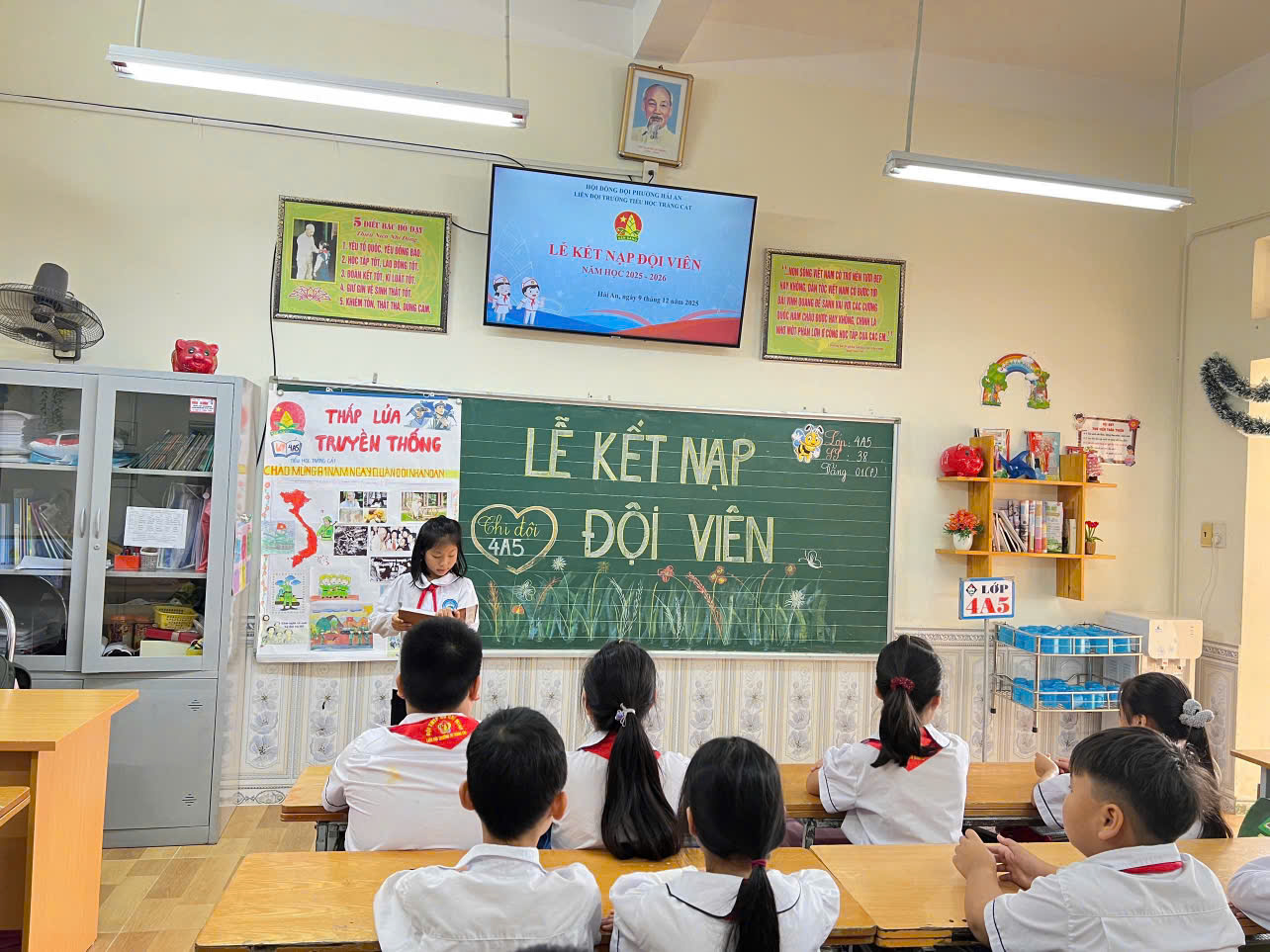 Hôm nay, Liên đội trường tiểu học Tràng Cát đã long trọng tổ chức Lễ kết nạp Đội TNTP Hồ Chí Minh cho các em học sinh lớp 4. Buổi lễ diễn ra trong không khí trang nghiêm, đầy cảm xúc và tự hào.