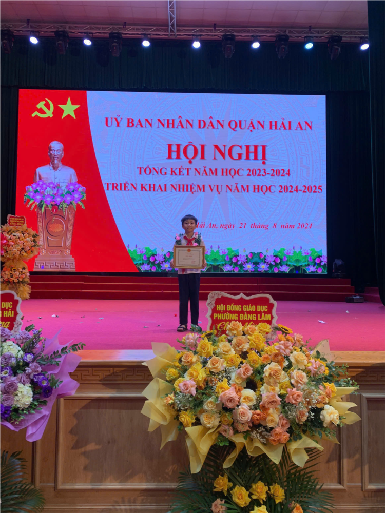 🌼Tại Hội nghị, 2 em học sinh Bùi Hồng Phúc lớp 5A1 và học sinh Trần Bảo Phúc lớp 3A1 được UBND Quận Hải An biểu dương.