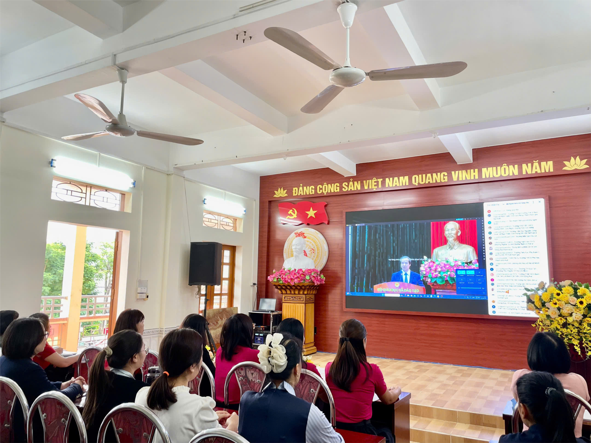 Tại điểm cầu nhà trường, Ban Giám hiệu cùng tập thể giáo viên đã nghiêm túc tham dự, lắng nghe và tiếp thu nội dung trọng tâm của Nghị quyết. Hội nghị giúp đội ngũ cán bộ, giáo viên nắm vững chủ trương – định hướng – nhiệm vụ – giải pháp đột phá của ngành Giáo dục trong giai đoạn mới.