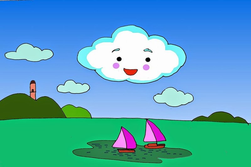 Hồ nước gọi ông mặt trời rọi nắng xuống cho nước bốc hơi lên. Chị mây khỏe dần, nặng dần để chuẩn bị mưa xuống.