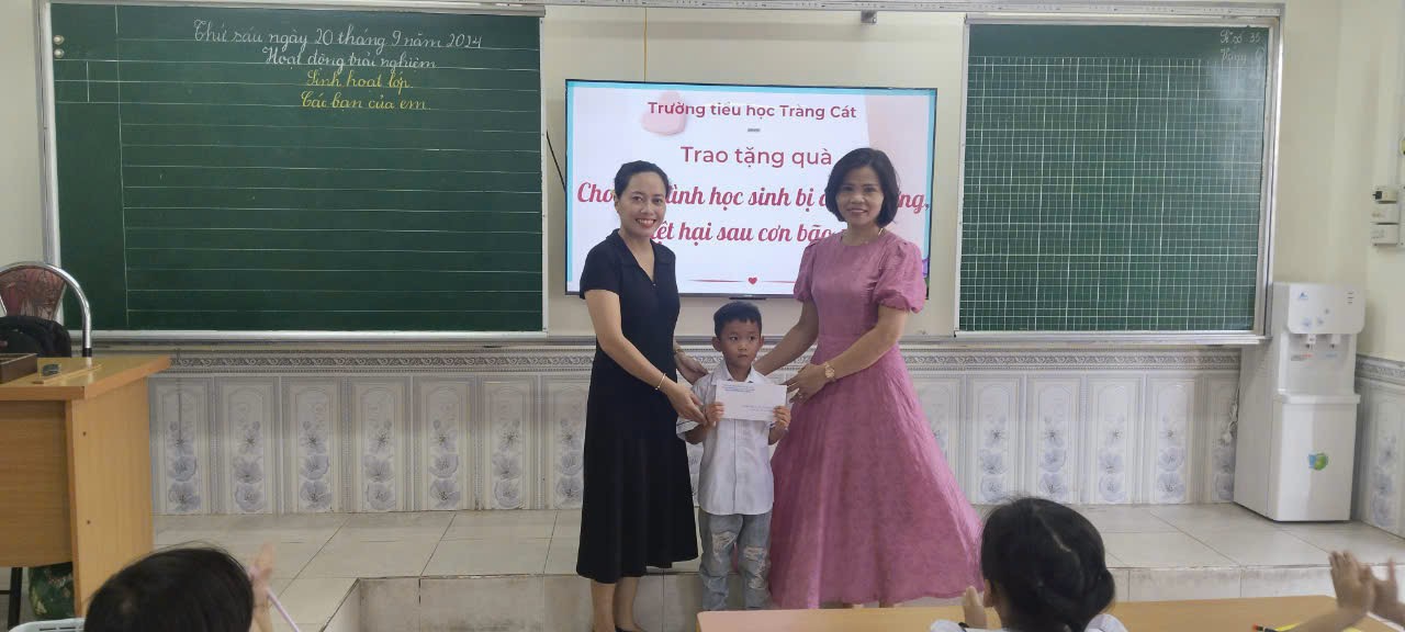 tổ chức trao quà tặng cho gia đình học sinh bị thiệt hại sau cơn bão số 3.
