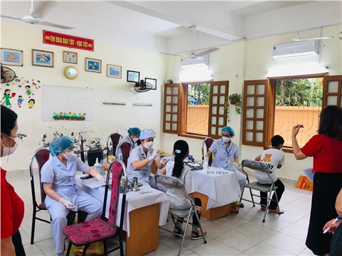 - Phối hợp với CMHS trong công tác tuyên truyền ý nghĩa, lợi ích, quy mô của chiến dịch tiêm vắc xin phòng COVID-19 cho trẻ em từ 5 đến 11 tuổi; vận động cha mẹ học sinh cho con tham gia tiêm chủng chiến dịch và ký phiếu đồng thuận đối với trẻ em.